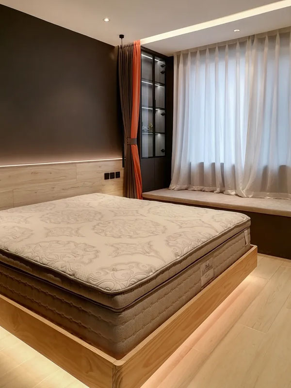6、对客厅与卧室飘窗进行了合理利用,客厅飘窗改造成休闲区,平时喝茶聊天;卧室飘窗改为储物+休闲区,存放杂物,平时二人静坐畅聊,畅享美好生活。