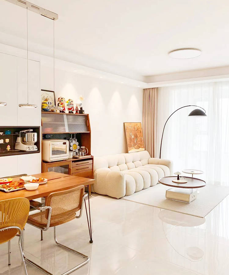 3、地面选购白色瓷砖通铺,真的炒鸡显大!